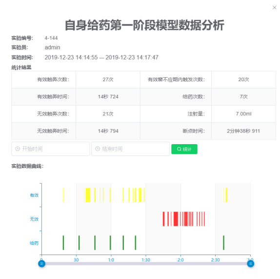 軟件分析的數(shù)據(jù)有:實驗時間,有效觸發(fā)次數(shù),無效觸發(fā)次數(shù),給藥次數(shù)(投食次數(shù)),有效觸發(fā)時間,無效觸發(fā)時間,斷點時間,不應(yīng)期內(nèi)觸發(fā)次數(shù)等