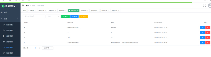 5、項目管理:一套系統(tǒng)可以添加多個實驗項目